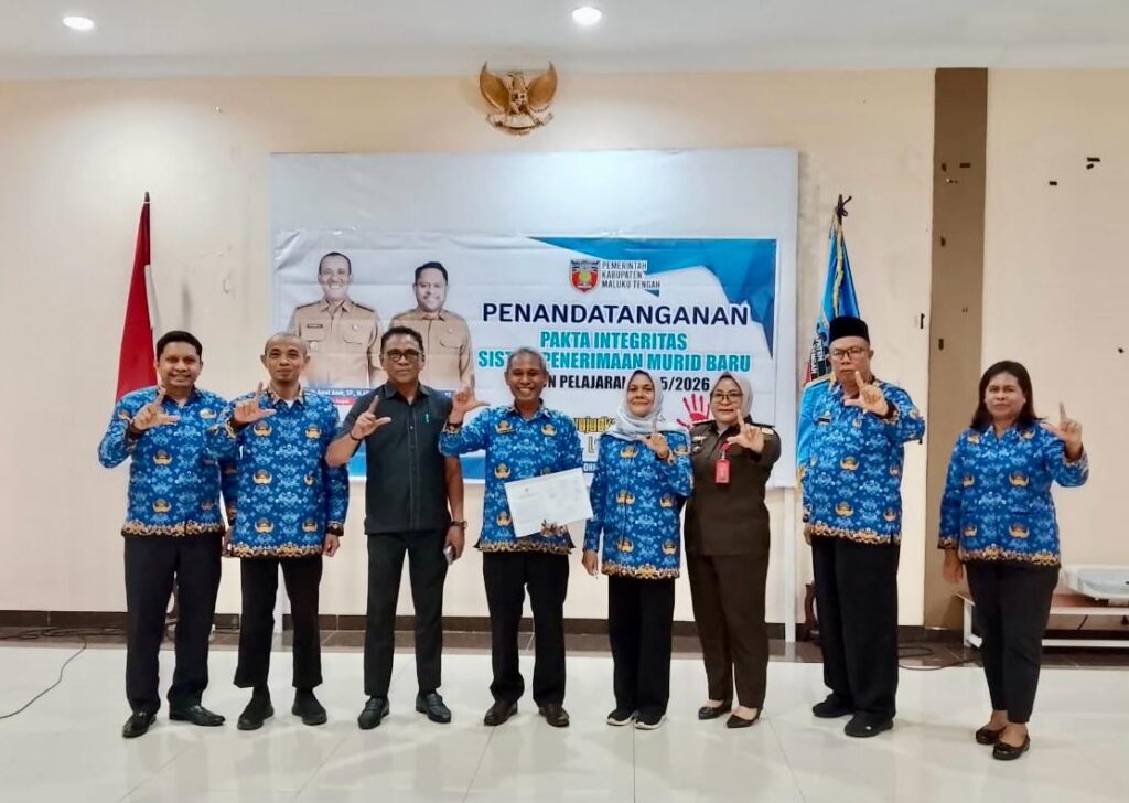 Masohi, Indolensa – Pemerintah Kabupaten Maluku Tengah menegaskan komitmen penyelenggaraan pendidikan yang bersih, objektif, dan adil melalui penandatanganan Pakta Integritas Sistem Penerimaan Murid Baru (SPMB) Tahun Ajaran 2025/2026. Kegiatan berlangsung di Lantai III Kantor Bupati dan dihadiri oleh unsur Forkopimda, Kejaksaan, Inspektorat, DPRD, Dukcapil, Dinas Pendidikan, serta para kepala sekolah se-Kabupaten Malteng.
