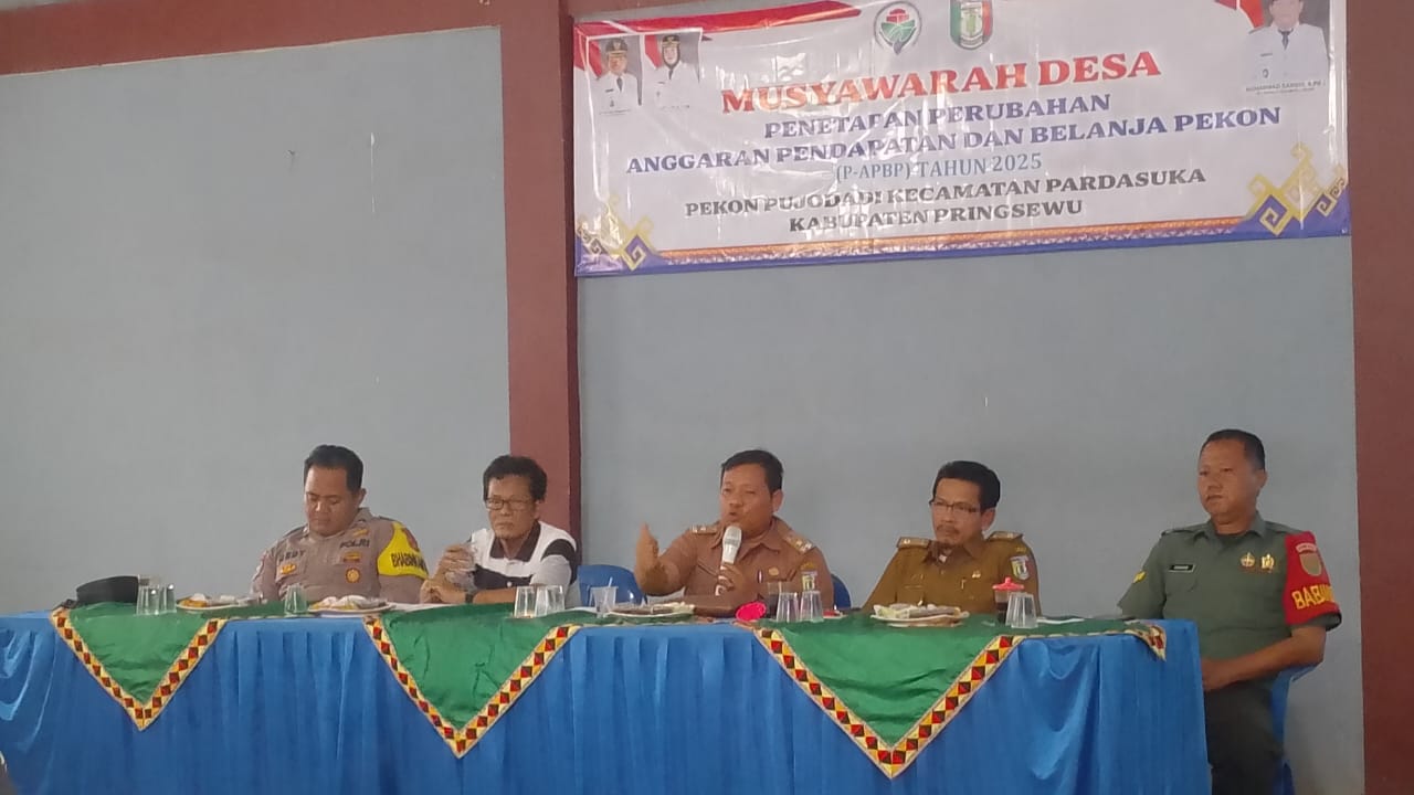 Indolensa.com.Pringsewu Pardasuka Musdes Penetapan perubahan anggaran pembelanjaan Pekong pujidadi kecamatan Pardasuka Pringsewu, 24/06/25.