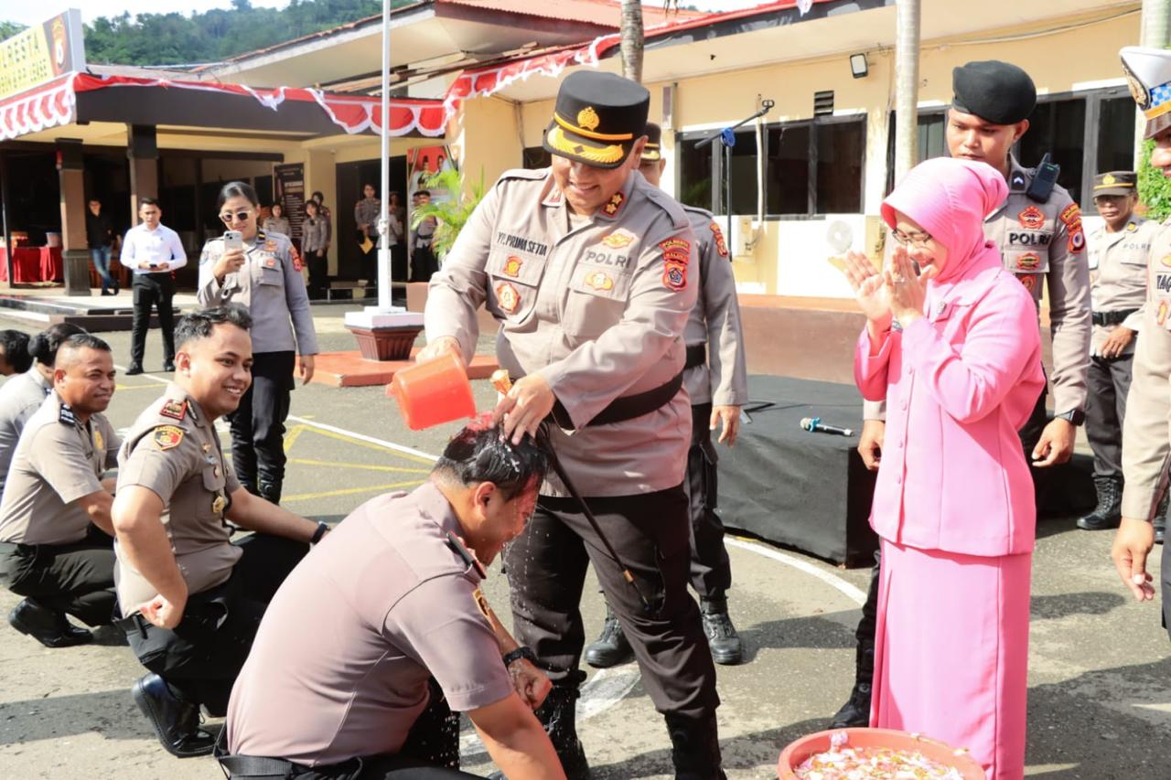 Upacara yang berlangsung khidmat ini dipimpin langsung oleh Kapolresta Ambon & P.P. Lease, AKBP Dr. Yoga Putra Prima Setya, S.I.K., M.I.K., dengan didampingi sejumlah pejabat utama, termasuk Wakapolresta, Kabag, Kasat, Kapolsek jajaran, serta Ketua Bhayangkari Cabang dan anggota Bhayangkari.
