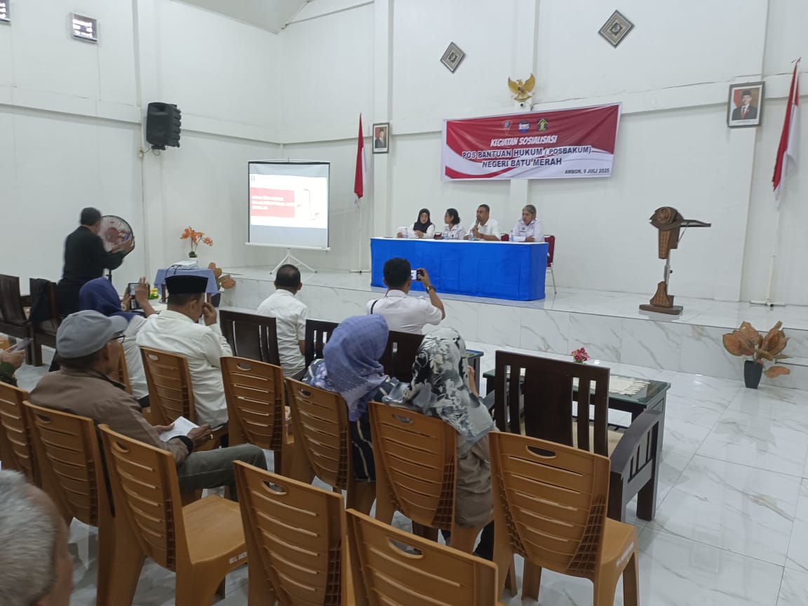 Ambon, Indolensa – Upaya mendekatkan keadilan kepada masyarakat terus dilakukan Pemerintah Negeri Batu Merah. Kali ini melalui peluncuran Pos Bantuan Hukum (Posbakum) sebagai fasilitas layanan hukum gratis bagi masyarakat tidak mampu. Kegiatan sosialisasi ini berlangsung di Balai Negeri Batu Merah dan dibuka langsung oleh Raja Negeri Batu Merah, Ali Hatala.