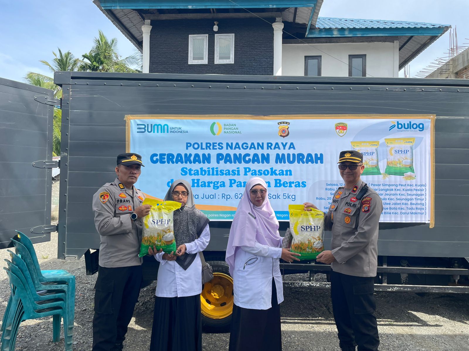 Selama kegiatan berlangsung, personel Polres Nagan Raya turut melakukan pengamanan untuk memastikan acara berjalan tertib, lancar, dan kondusif. Masyarakat yang hadir tampak antusias memanfaatkan kesempatan untuk membeli bahan pangan berkualitas dengan harga yang lebih murah dari pasaran.