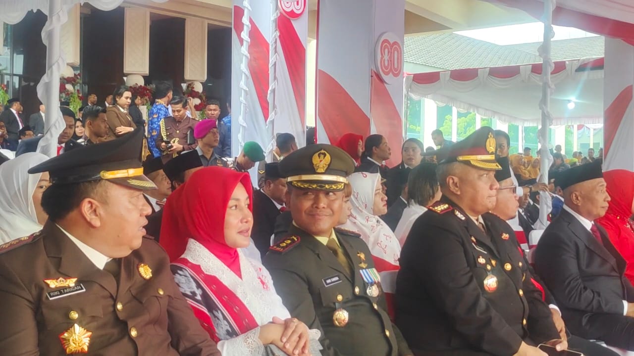Ambon, Indolensa – Komandan Kodim (Dandim) 1504/Ambon, Letkol Inf Hari Sandra, menghadiri upacara peringatan Hari Ulang Tahun (HUT) ke-80 Republik Indonesia di Lapangan Merdeka, Ambon, Minggu (17/8/2025). Dalam kesempatan tersebut, beliau didampingi Ketua Persit Cabang XXVII, Ny. Yeli Astutik, yang tampil anggun dalam balutan busana merah-putih dipadukan dengan kain tenun khas Maluku.