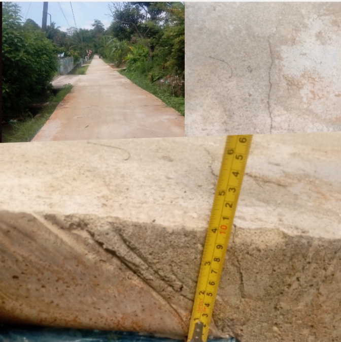 * Pajang bangunan 300 meter lebar 3 meter tebal 0,15 centi, saat di kroscek ke lapangan panjang bangunan serta ketebalan tidak sesuai dengan yang di ungkap perangkat Nagori.