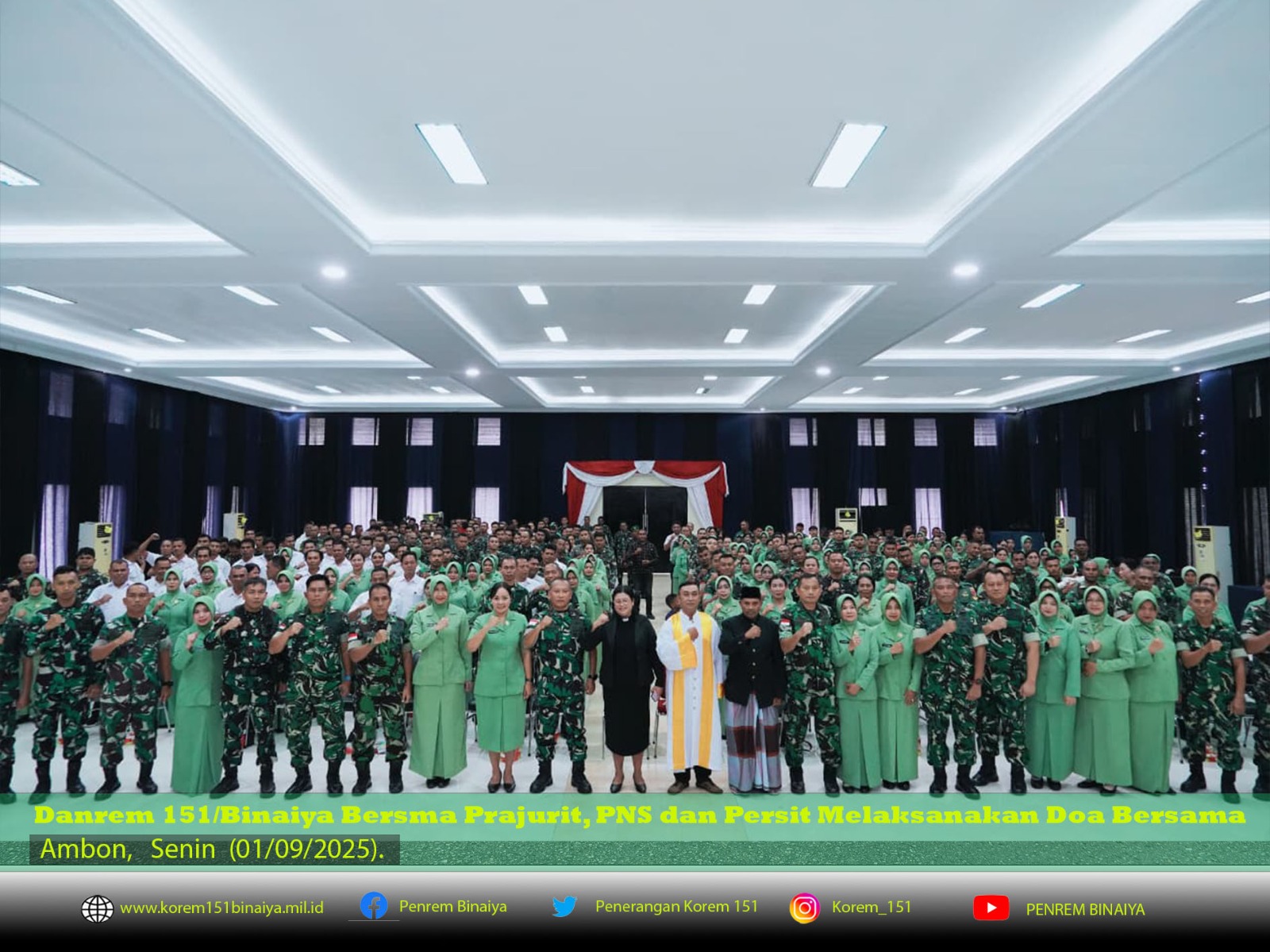 Kegiatan ini diikuti oleh Kasrem 151/Binaiya, Kasiren Korem, para Kasi dan Kabalak, Ketua Persit KCK Koorcab Rem 151 PD XV/Pattimura, perwira, bintara, PNS, serta Persit. Sejumlah tokoh agama dari Islam, Kristen, Katolik, dan Hindu turut hadir memimpin doa sesuai keyakinan masing-masing.