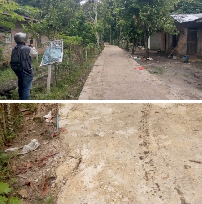 Rabat beton mengunakan anggaran Dana Desa tahun 2025 dengan nilai pagu Rp 76 juta panjang 80 meter lebar 2,5 meter tebal 0,15 meter, tidak membawa dampak positif bagi warga. Menurut sumber, Jumat 19/09/2025 pukul 10.30 wib usia rabat beton baru mencapai 2 bulan, namun kualitas yang dihasilkan tidak memuaskan, hal ini berpotensi merugikan ke uangan negara.
