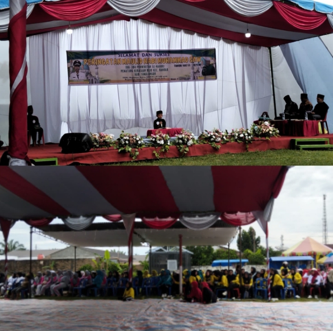 Simalungun | ILC – Kepala Desa (Pangulu) Pematang Kerasaan Rejo Sidik Purnomo, kecamatan Bandar, kabupaten Simalungun, Sumatra Utara, saat ini tengah merayakan hari besar Islam ( Maulid Nabi Muhammad SAW 1447 Hijriah). Acara berlangsung di lapangan koprasi merah putih Nagori Pematang Kerasaan Rejo. Minggu (28/09) pukul 08.00 wib acara di mulai.