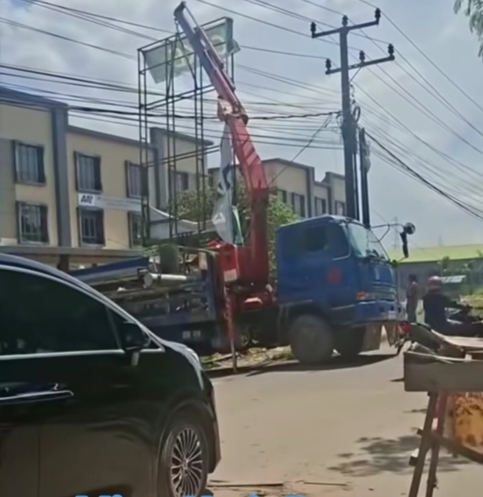 Batam – Kegiatan penertiban papan reklame di kawasan Marina, Kecamatan Batu Aji, Kota Batam, pada Sabtu (4/10/2025) siang, sempat diwarnai insiden yang hampir memicu kebakaran. Peristiwa terjadi ketika alat berat jenis crane yang digunakan untuk menurunkan papan reklame tanpa sengaja menyentuh kabel induk listrik tegangan tinggi hingga menimbulkan percikan api.