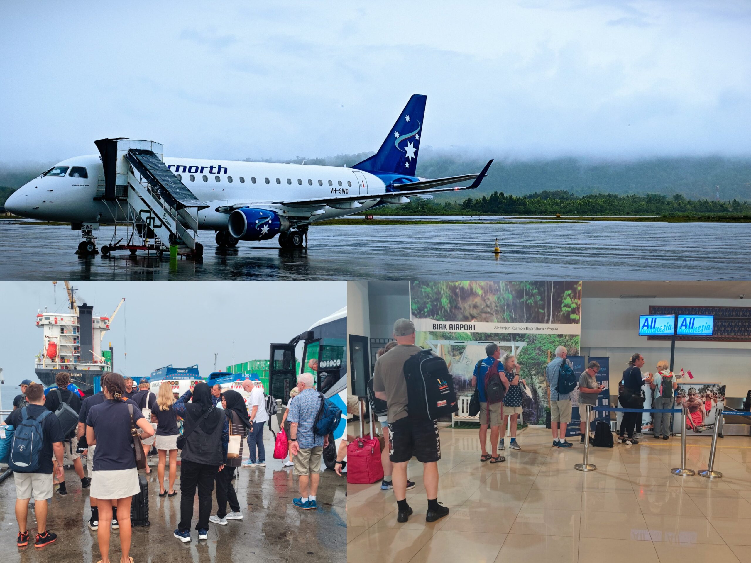 Pada waktu yang sama, pesawat charter AirNorth dari Darwin tiba di Bandara Frans Kaisiepo dengan membawa 6 kru pesawat dan 22 WNA. Seluruh penumpang dan awak pesawat menjalani proses clearance oleh petugas imigrasi secara ketat, mencakup pemeriksaan dokumen perjalanan, manifest, dan verifikasi identitas diri sesuai regulasi terkini. Setelah proses selesai, para WNA melanjutkan perjalanan menuju kapal TrueNorth di Pelabuhan Biak.