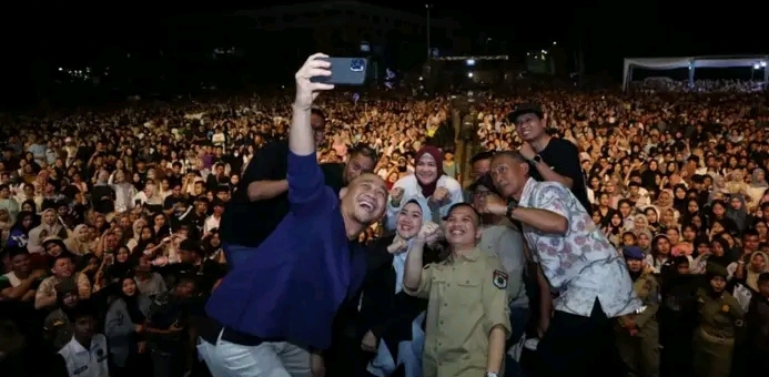 Tak hanya itu, panggung hiburan rakyat juga dimeriahkan oleh Diva Aurel (Tabola Bale), Faris Adam (Stecu Stecu), dan Fauzi Baadilah yang berhasil menghibur ribuan masyarakat yang memadati kawasan Taman Olahraga Megang.