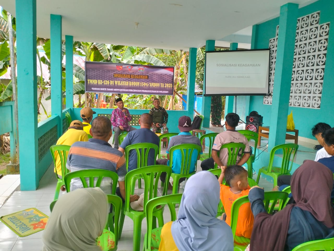Bersinergi dengan Kementerian Agama (Kemenag) Kota Ambon, Satgas TMMD menggelar penyuluhan keagamaan bagi warga Dusun Tagepe, Desa Poka, Kota Ambon, Sabtu (18/10/2025).