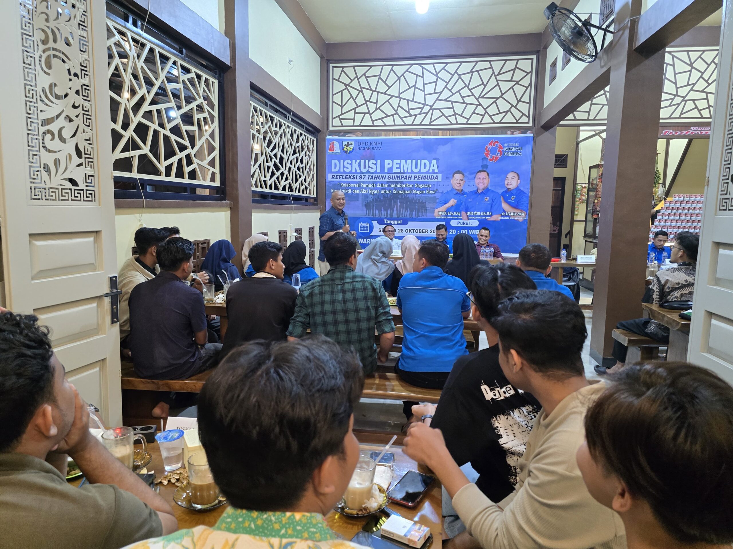 Nagan Raya – Dewan Pengurus Daerah Komite Pemuda Nasional Indonesia (DPD-KNPI) Kabupaten Nagan Raya Provinsi Aceh Gelar Diskusi Refleksi 97 Tahun Sumpah Pemuda dengan tema Kolaborasi Pemuda Dalam Memberikan Gagasan Kontruktif dan Aksi Nyata untuk Kemajuan Nagan Raya.