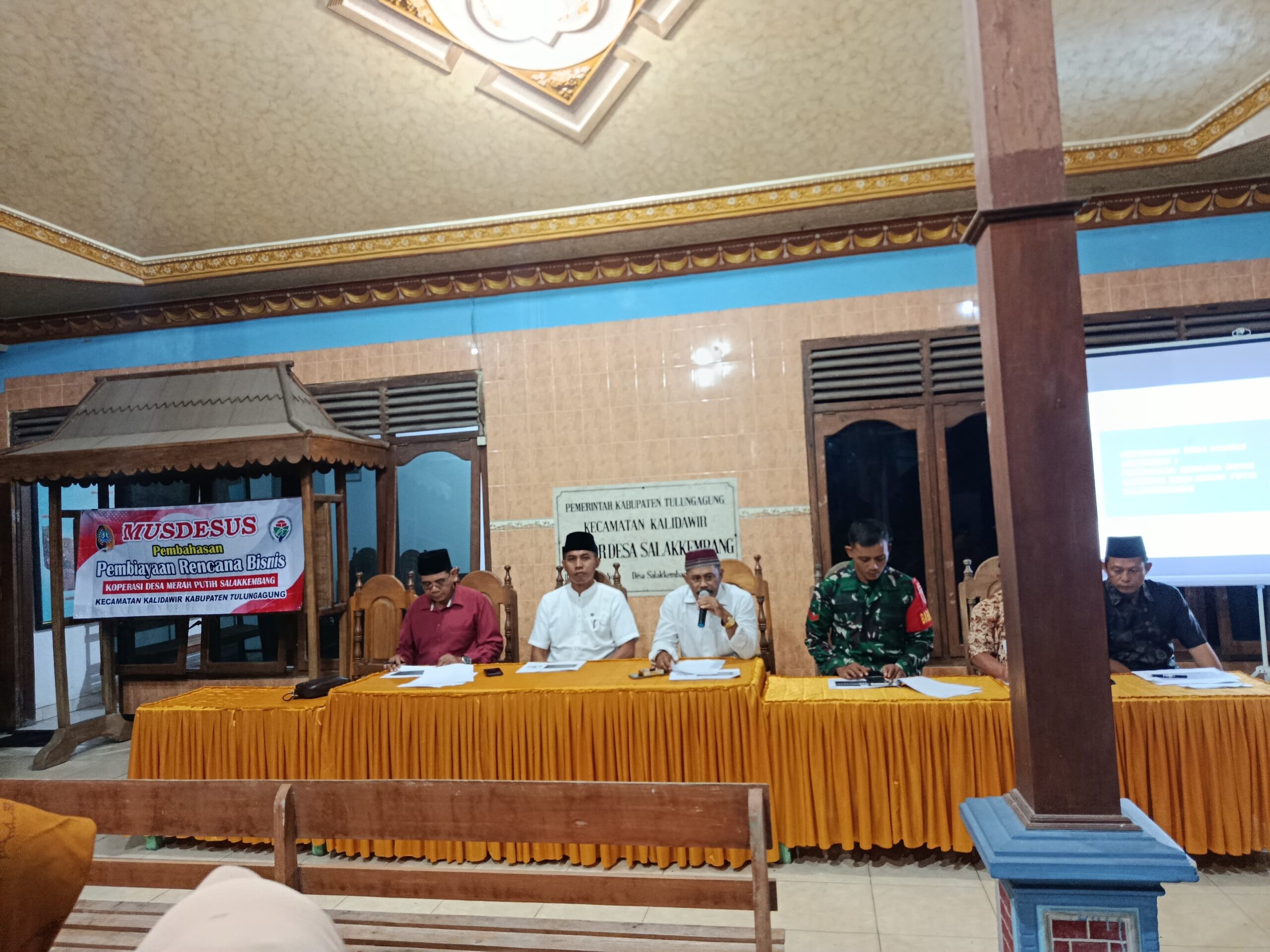 Tulungagung,- Pemerintah Desa Salakkembang, Kecamatan Kalidawir, Kabupaten Tulungagung, menggelar Musyawarah Desa (Musdes) Khusus pada Jumat (24/10/2025). Kegiatan ini membahas secara khusus mengenai pembiayaan rencana bisnis Koperasi Desa (Kopdes) Merah Putih.