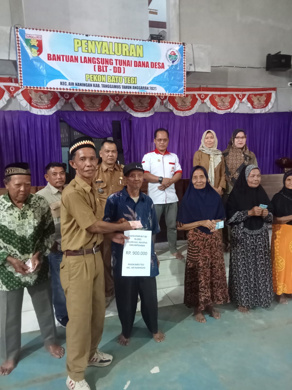 Indolensa.com.Tanggamus – Pemerintah Desa Batu Tegi,Kecamatan Air Naningan, Kabupaten Tanggamus, melaksanakan pembagian Bantuan Langsung Tunai Dana Desa (BLT-DD) tahap tiga tahun 2025. Penyaluran bantuan tersebut berlangsung pada di Balai pekon Batu Tegi.senin 03-11-2025.