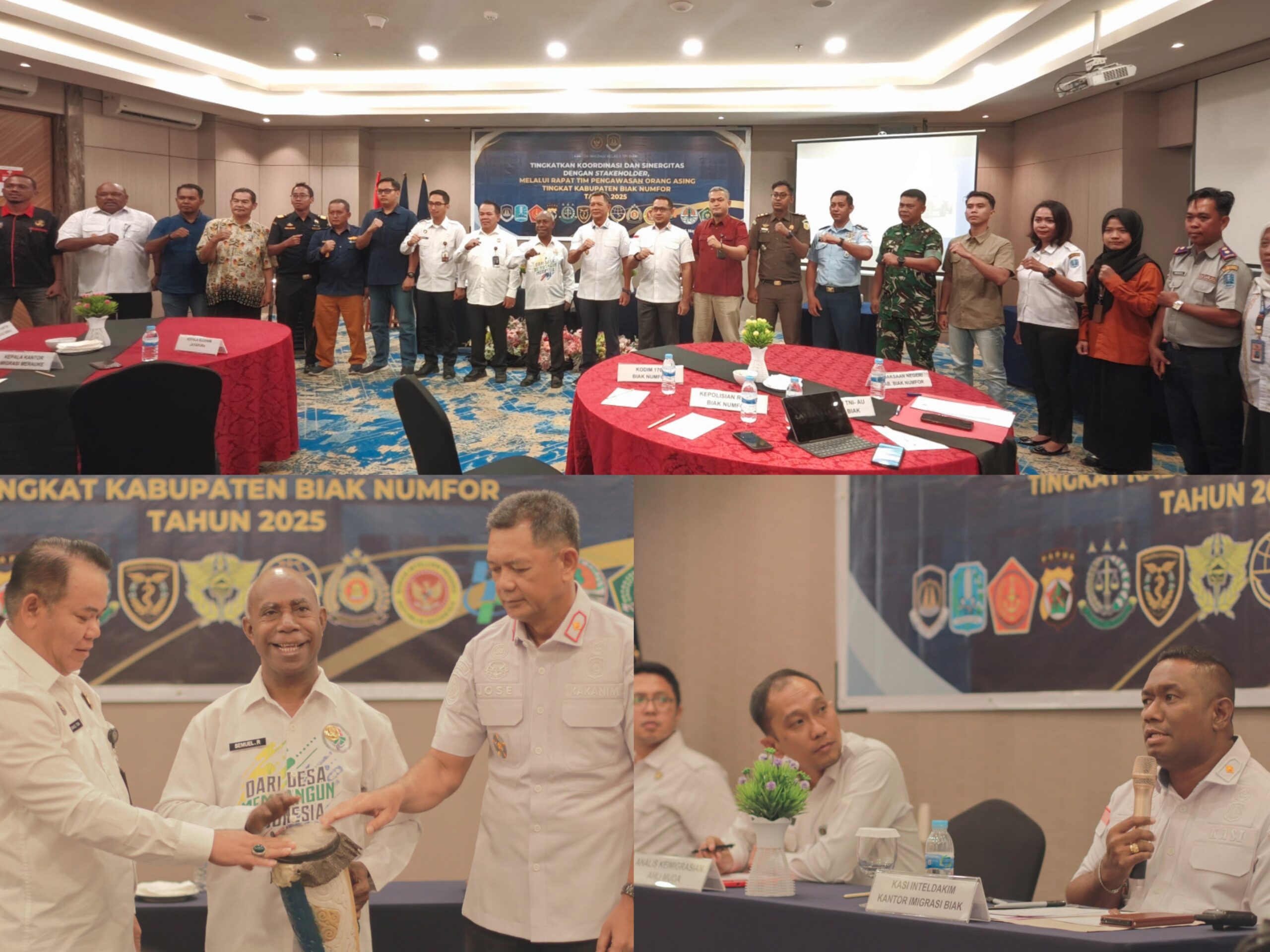 Biak, 26 November 2025 — Pemerintah Kabupaten Biak Numfor melalui Kantor Imigrasi Kelas II TPI Biak menyelenggarakan Rapat Koordinasi Tim Pengawasan Orang Asing (Timpora) tingkat Kabupaten Biak Numfor Tahun 2025 di Swiss-Belhotel Cenderawasih Biak, Rabu pagi (26/11). Kegiatan ini bertujuan memperkuat koordinasi antarinstansi dalam pengawasan keberadaan serta aktivitas orang asing di wilayah Kabupaten Biak Numfor.